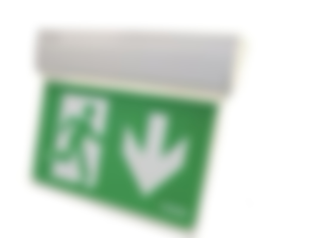 1 000 krEn nödbelysningsarmatur avsedd för permanentdrift med underhängande skylt för läsavstånd 30 meter.