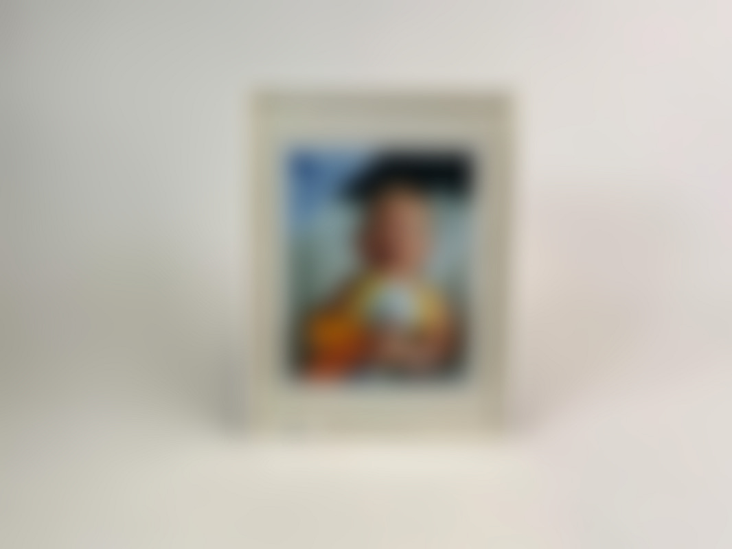 Vit ram med gulddetalj.