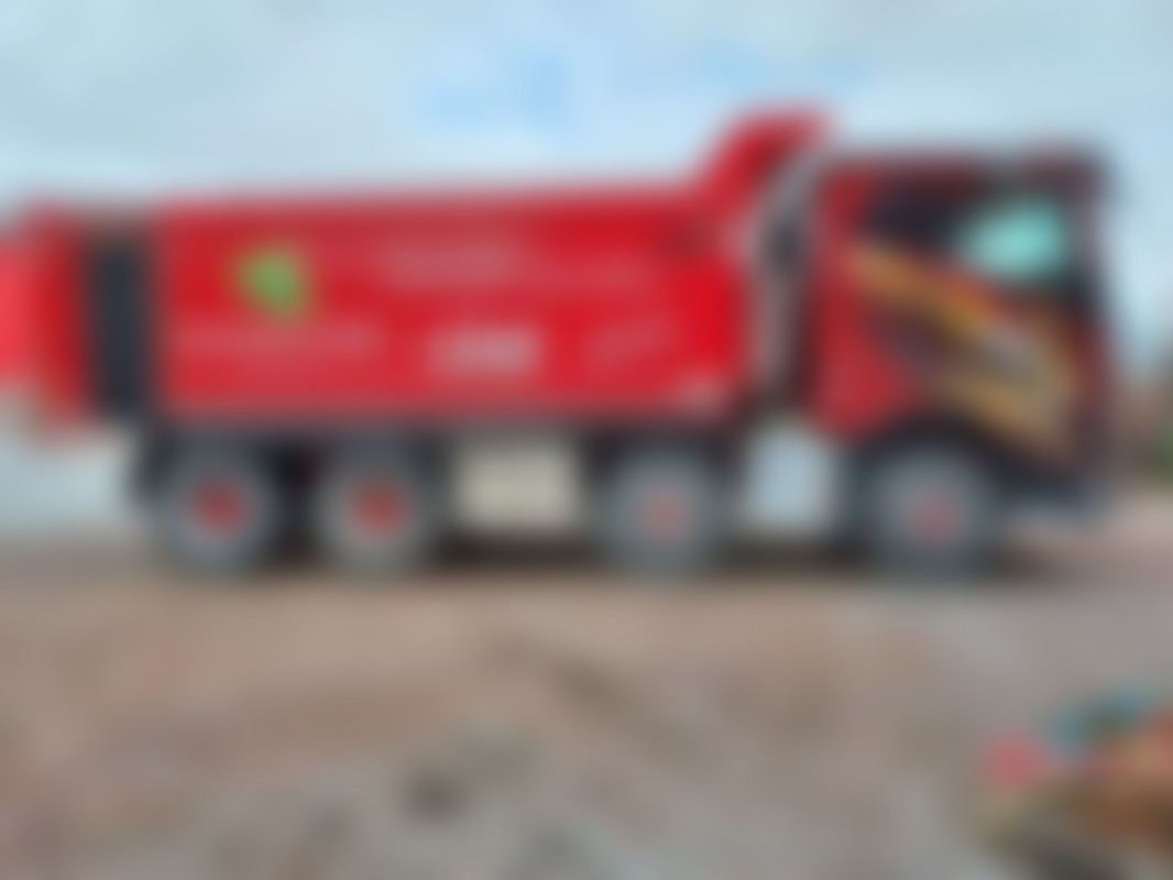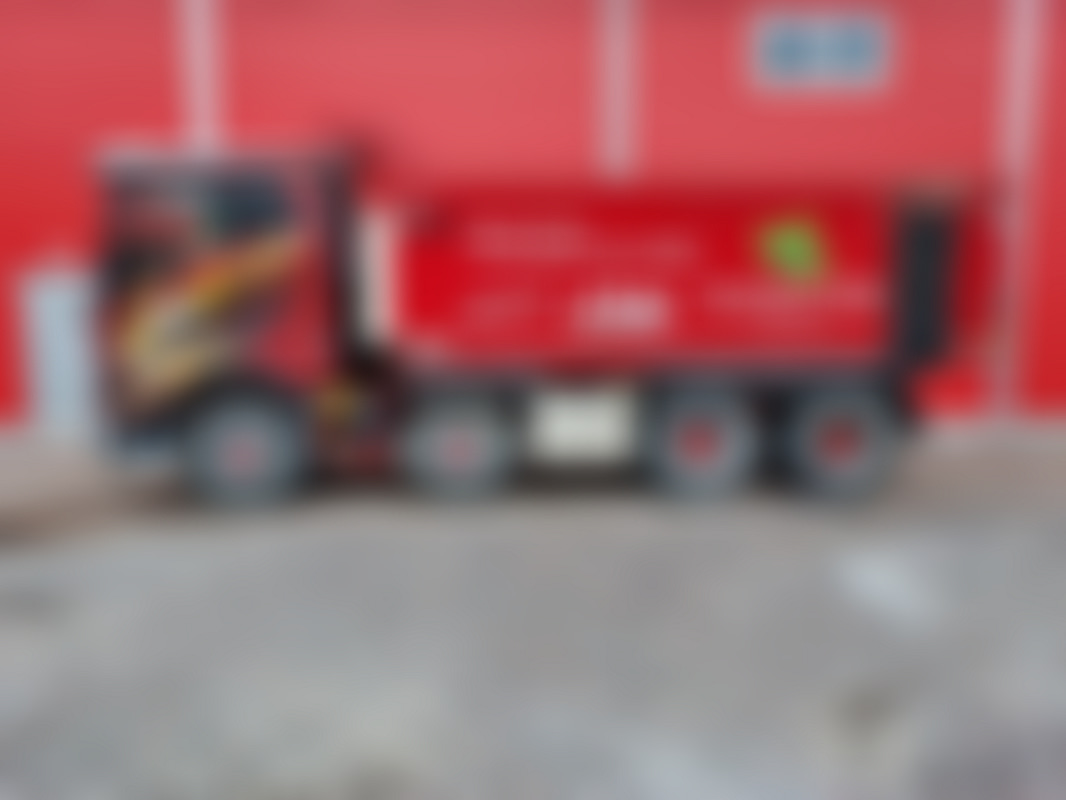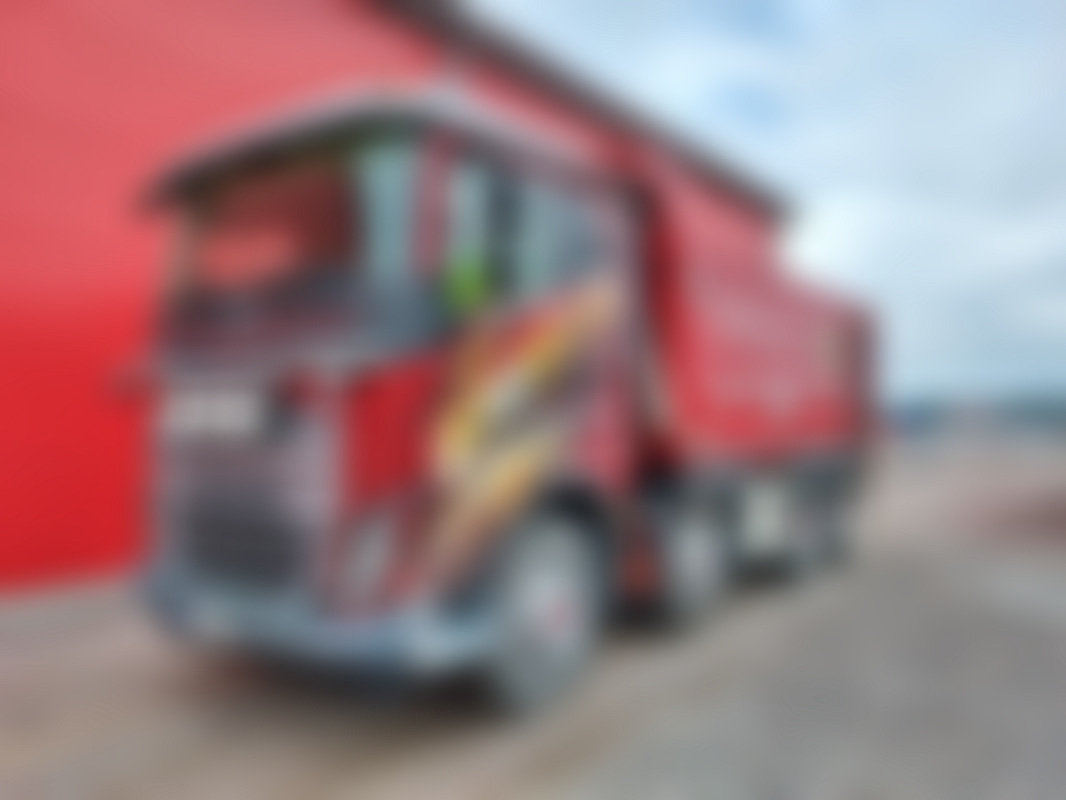 En mörkröd lastbil av årsmodell 2017 som är i trafik. Växellådan är automatisk och motorn är på 663 hk och drivs med diesel. Vi uppskattar den årliga körsträckan till 755 mil .