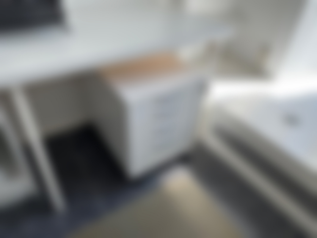 Kontor med skrivare & datorskärm m.m.