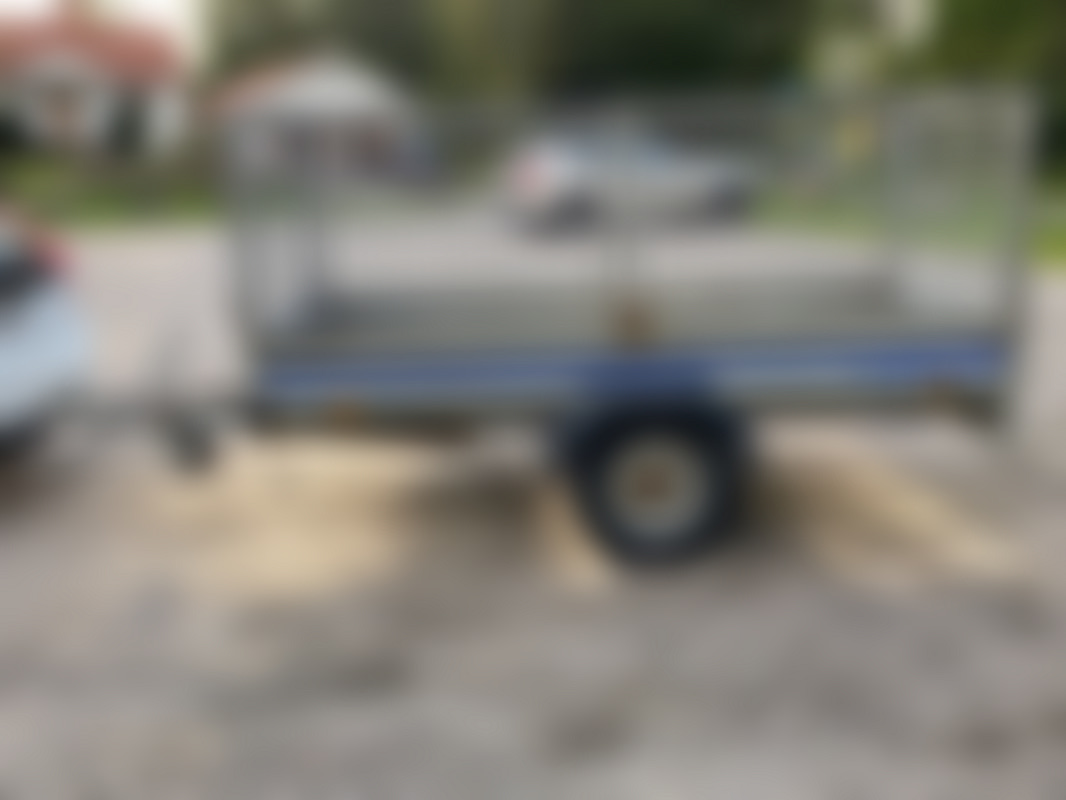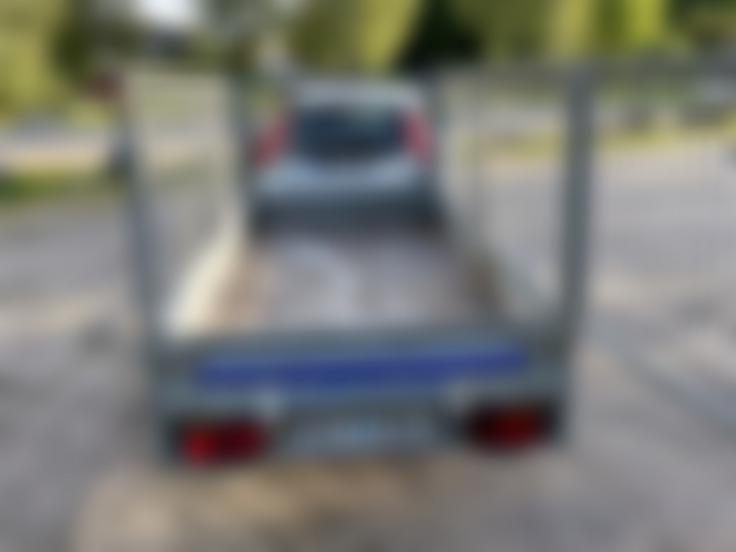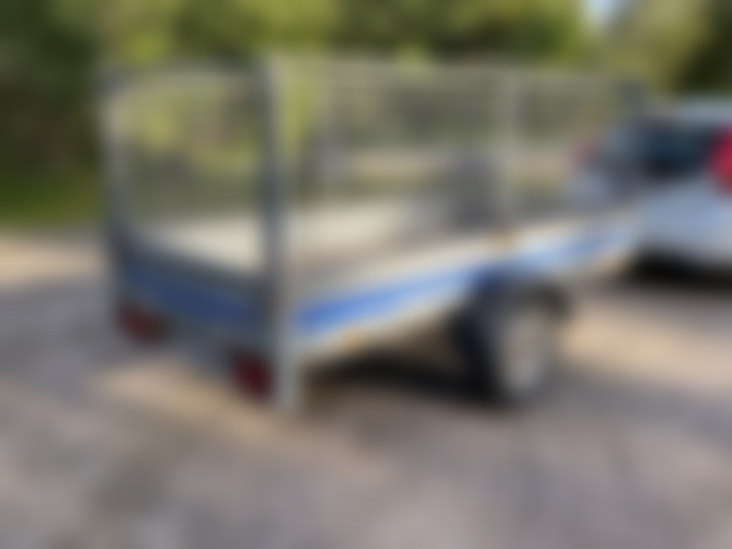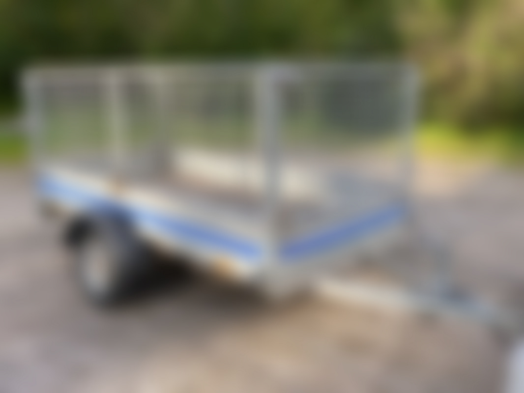 AllowedObromsat EU-släp med grindar, går fint efter bilen men behöver viss översyn. Dubbfria vinterhjul ca, 4-5mm Flertal belysningar fungerar ej Positionsljus vä-fram saknas Skärm skadad Slitet golv Stödhjulet lite snett, något sned rambalk