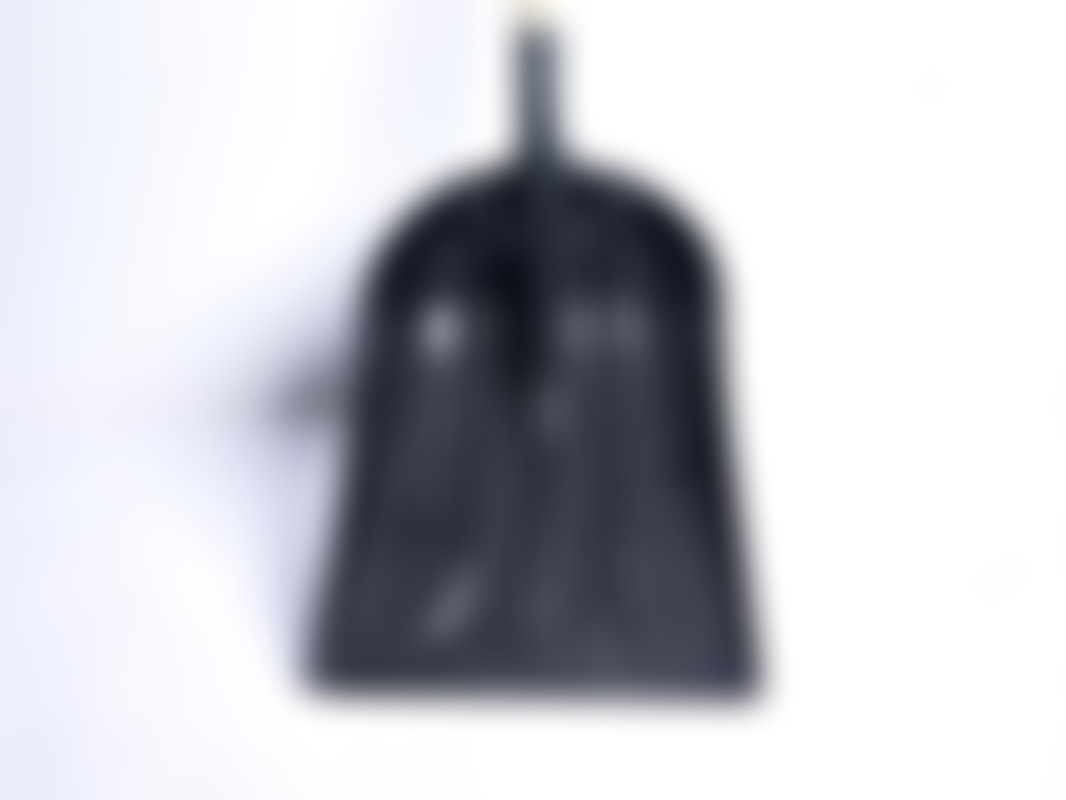 Svart skyffel: ca 80 cm skaft i trä, resten plast.