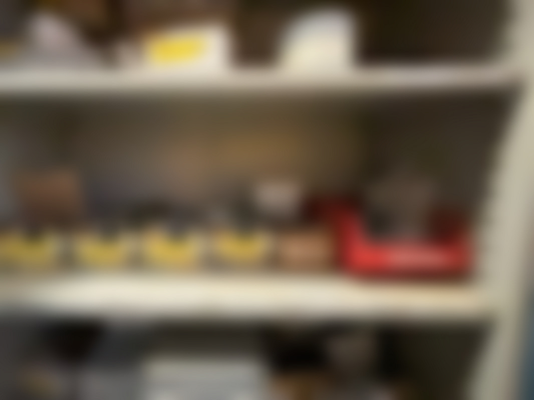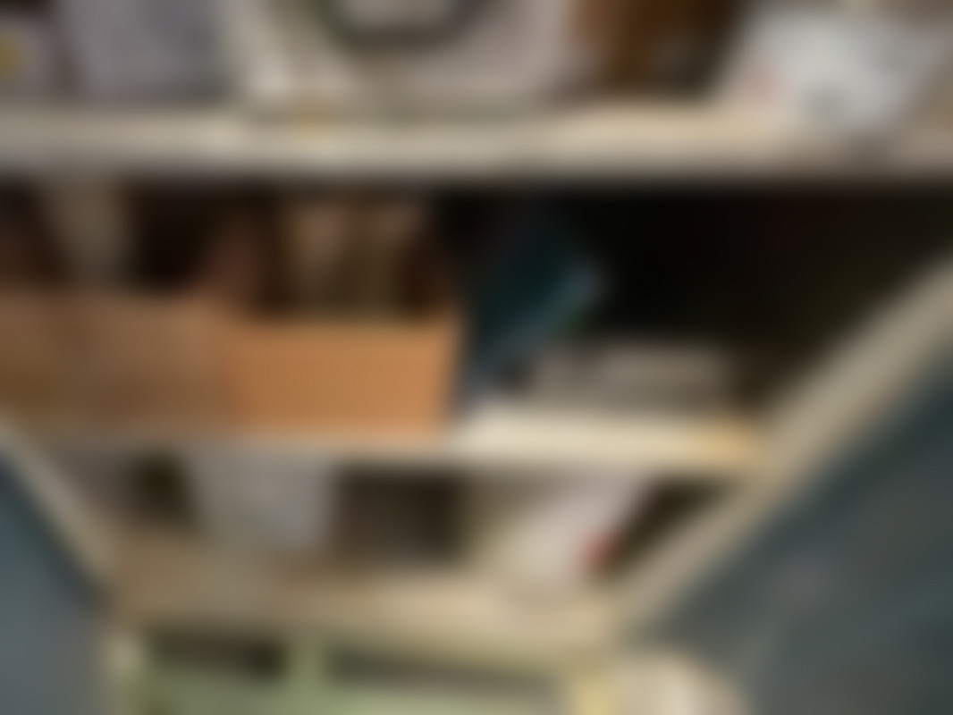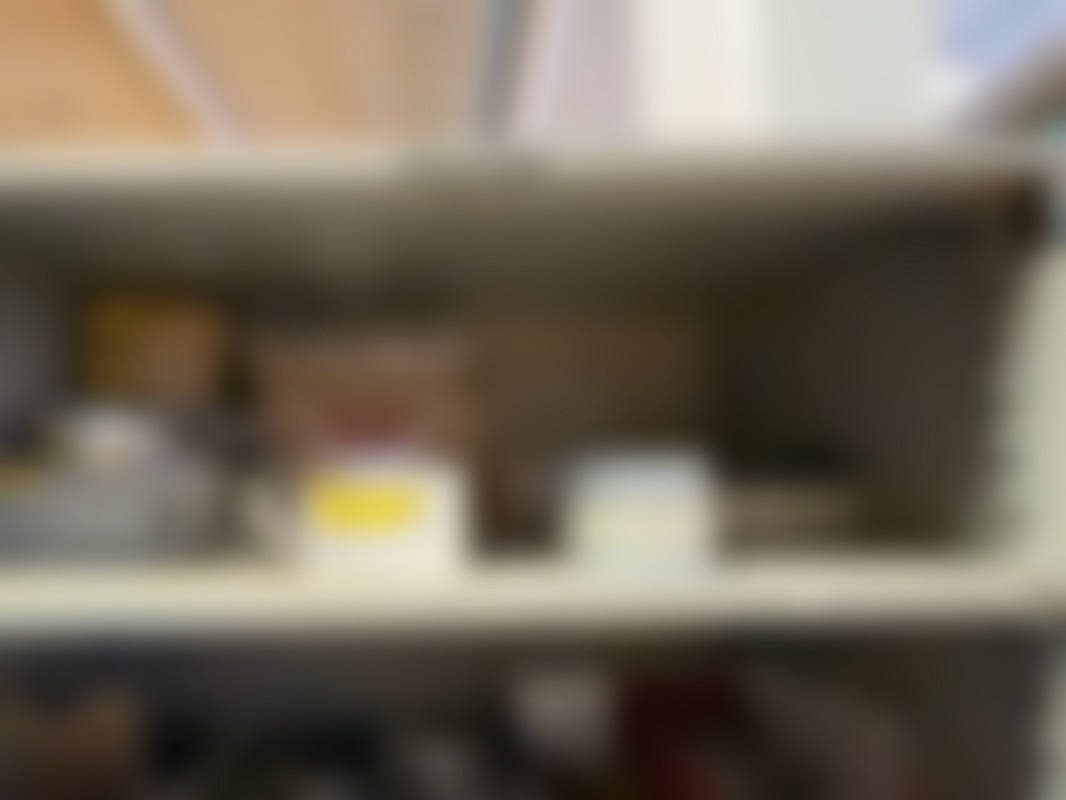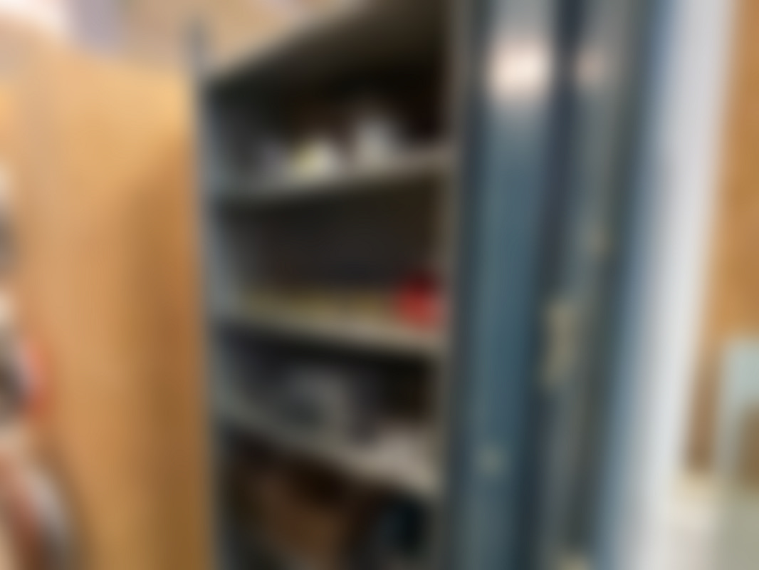 Plåtskåp med innehåll.