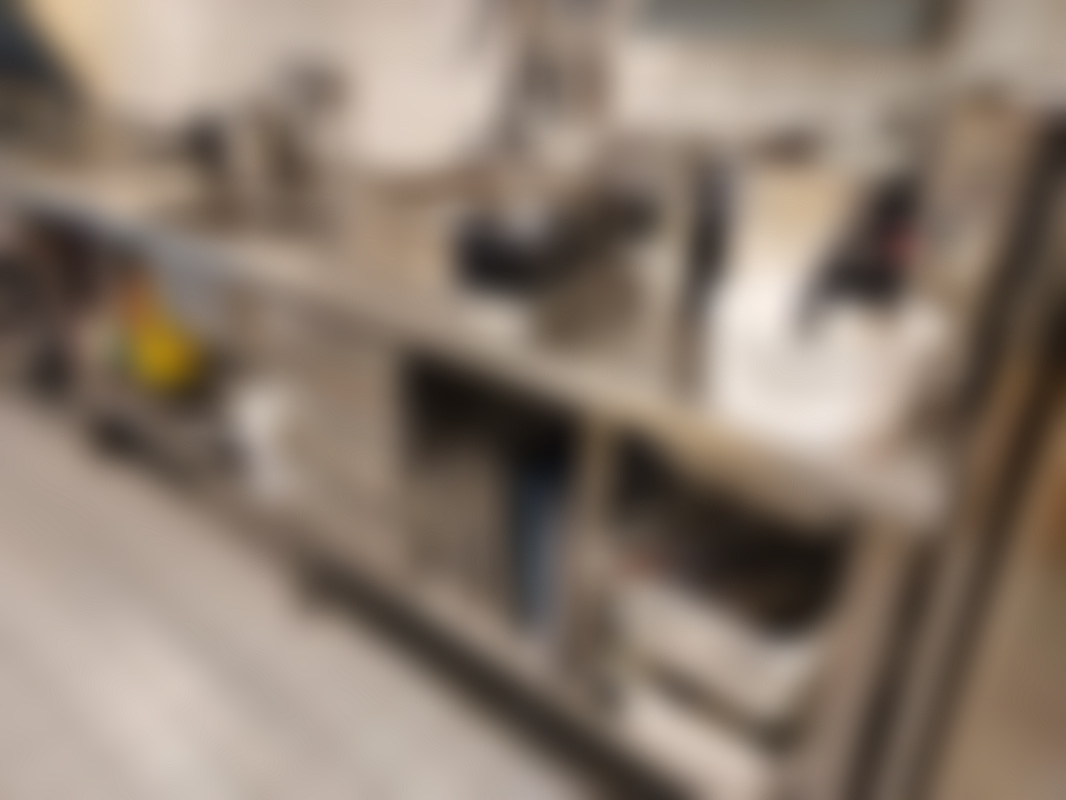 Not allowedLängre rostfri arbetsbänk med ho samt lådor och underhylla