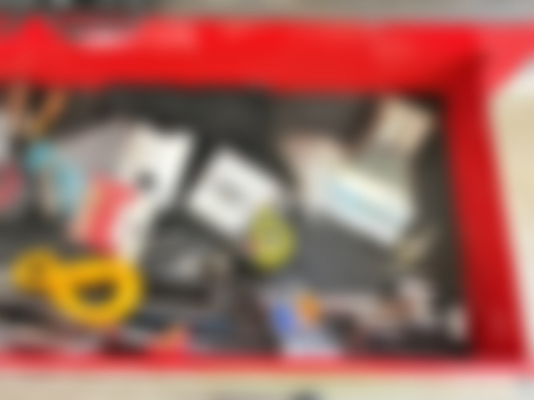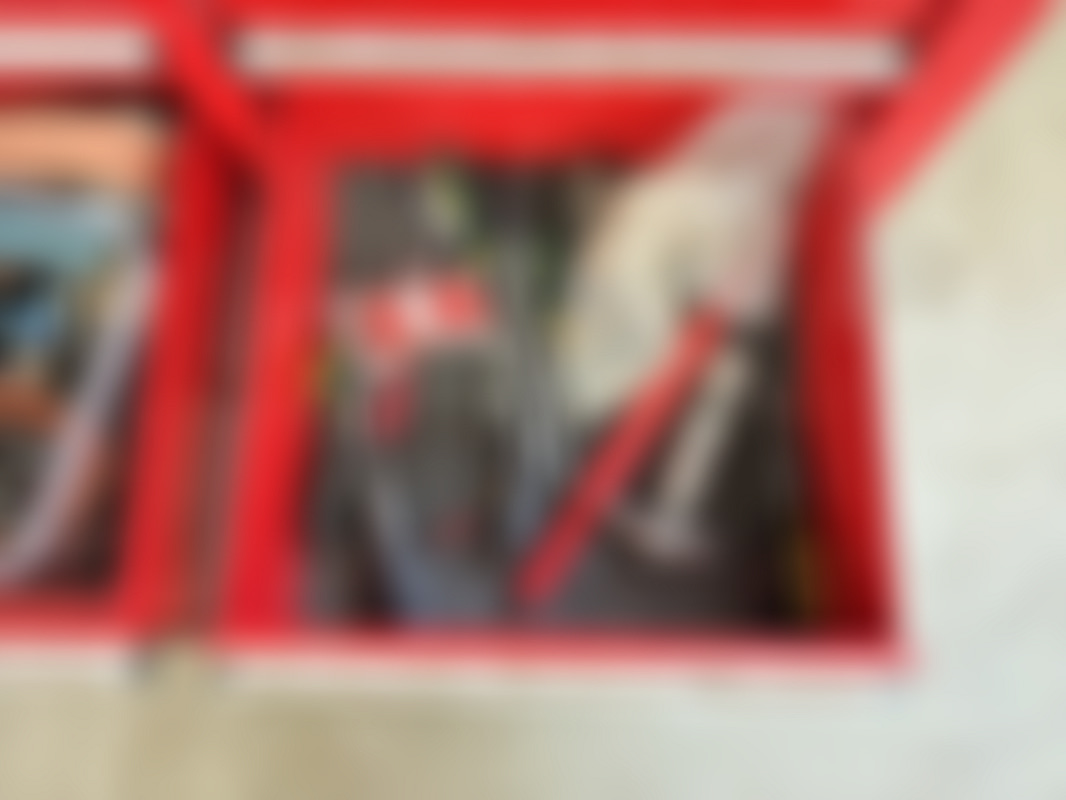 Diverse verktyg i väska samt på verktygstavla