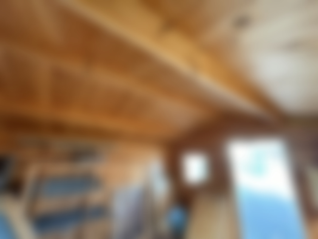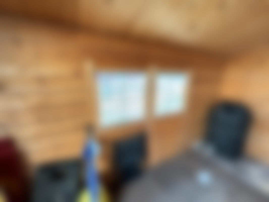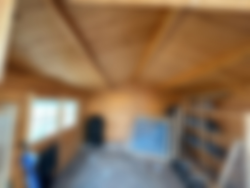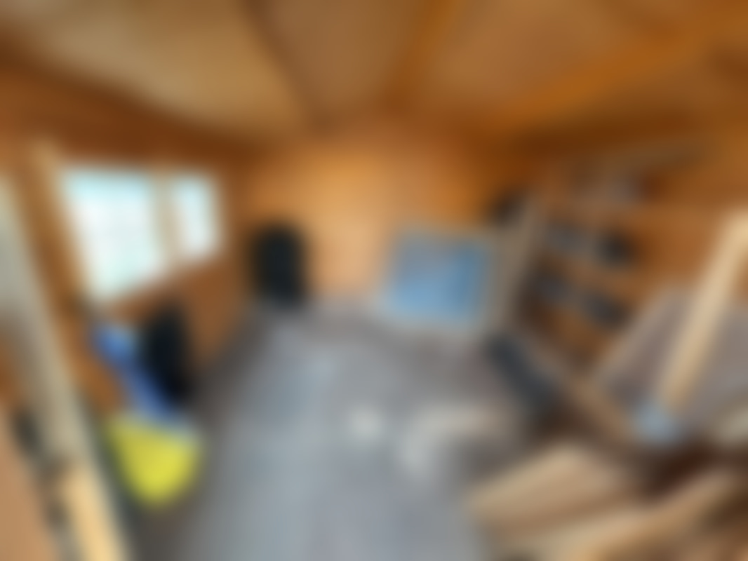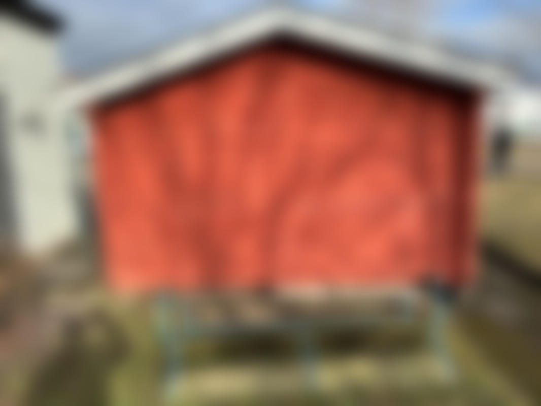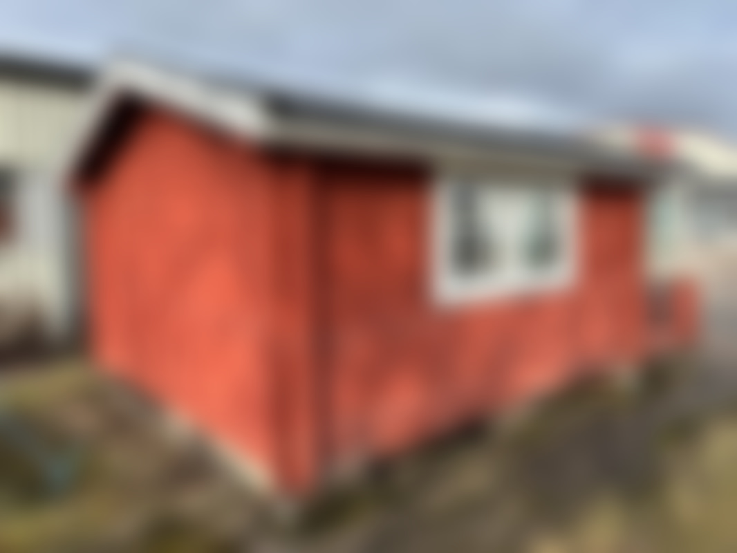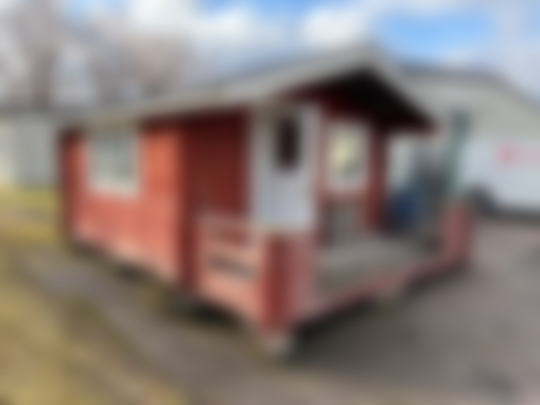 Knuttimrad stuga med veranda för avflyttning.