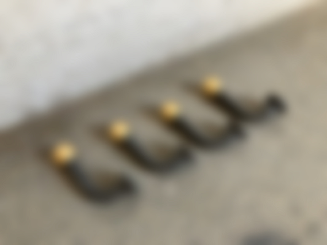 4 st. Krokar i gråmålad metall med mässingdetaljer