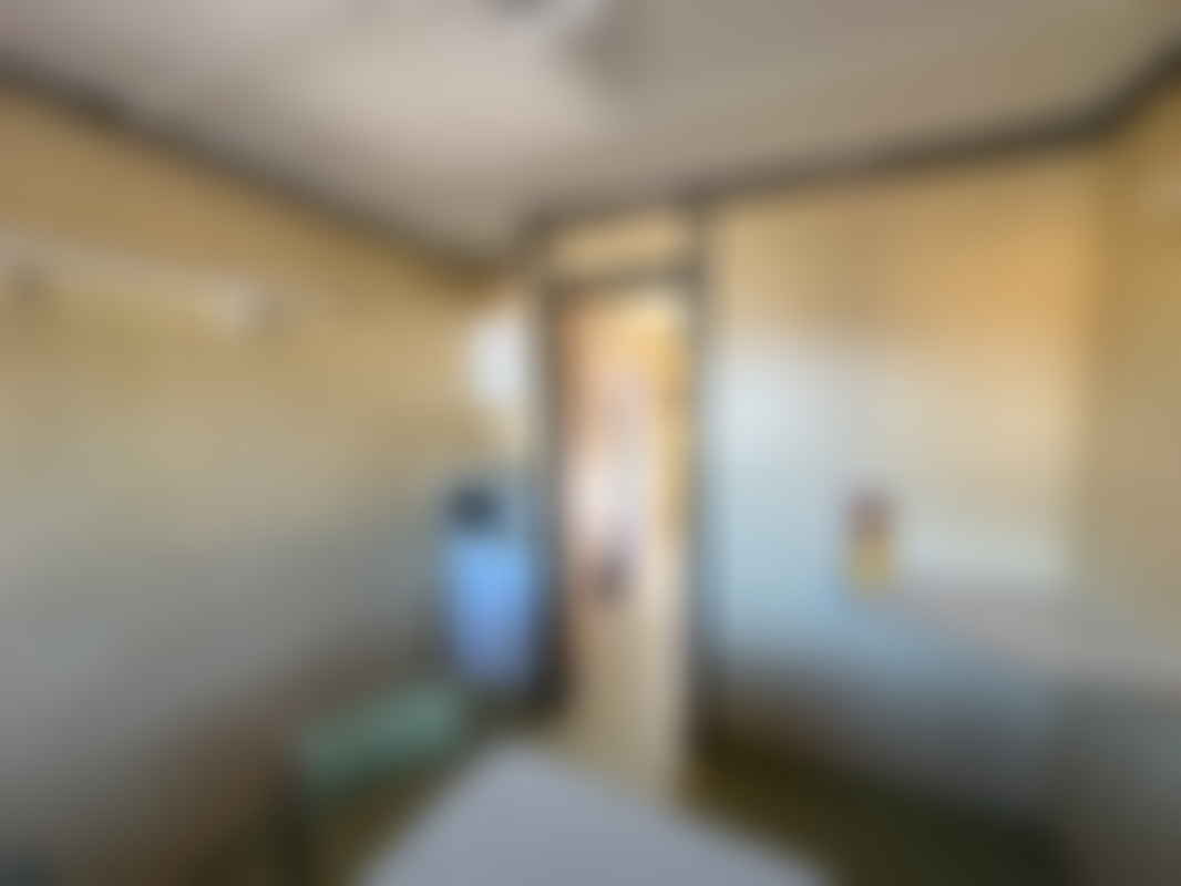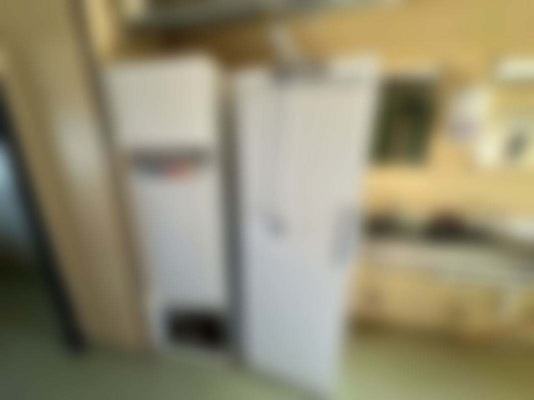 Lyftöglor, låsbom, wc med avfallskvarn, stege, klädskåp, torkskåp, varmvattenberedare, dusch, möbler, kylskåp, mikrovågsugn, värmeskåp, Skador och skavanker förekommer.