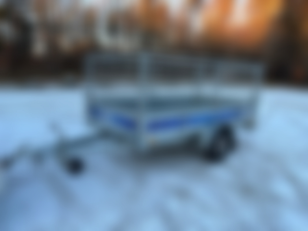 AllowedTippbar obromsad släpvagn i nära nyskick med 70 cm höga grindar.