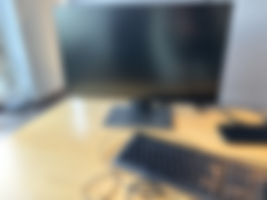 Höj- och sänkbart skrivbord, kontorsstol, datorskärm