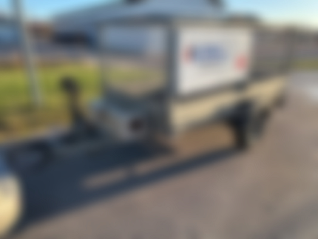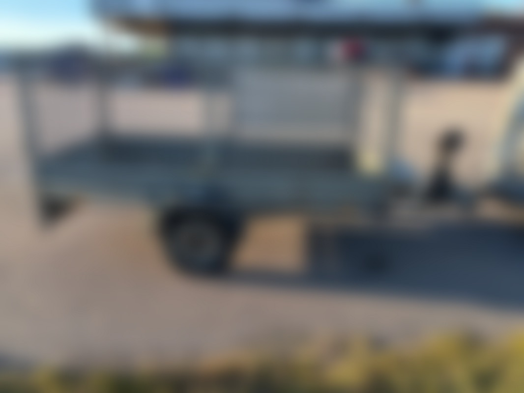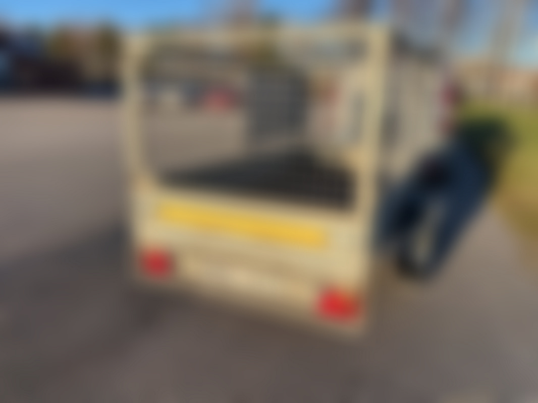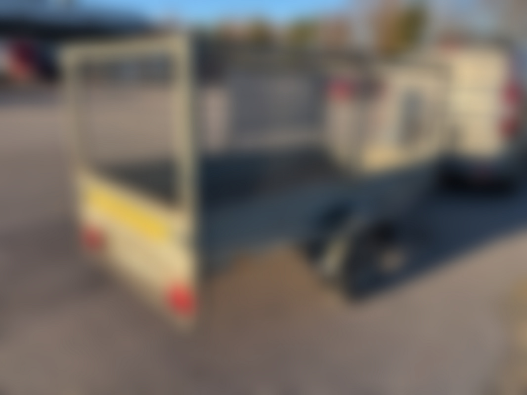AllowedSläpvagn med gallergrindar, förvaringslåda med spännband och enklare vinsch.