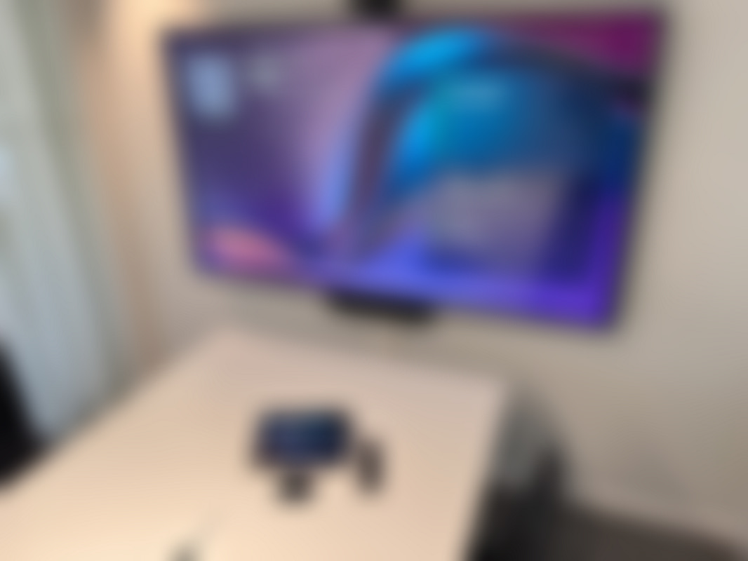Konferensutrustning med kamera och TV-skärm