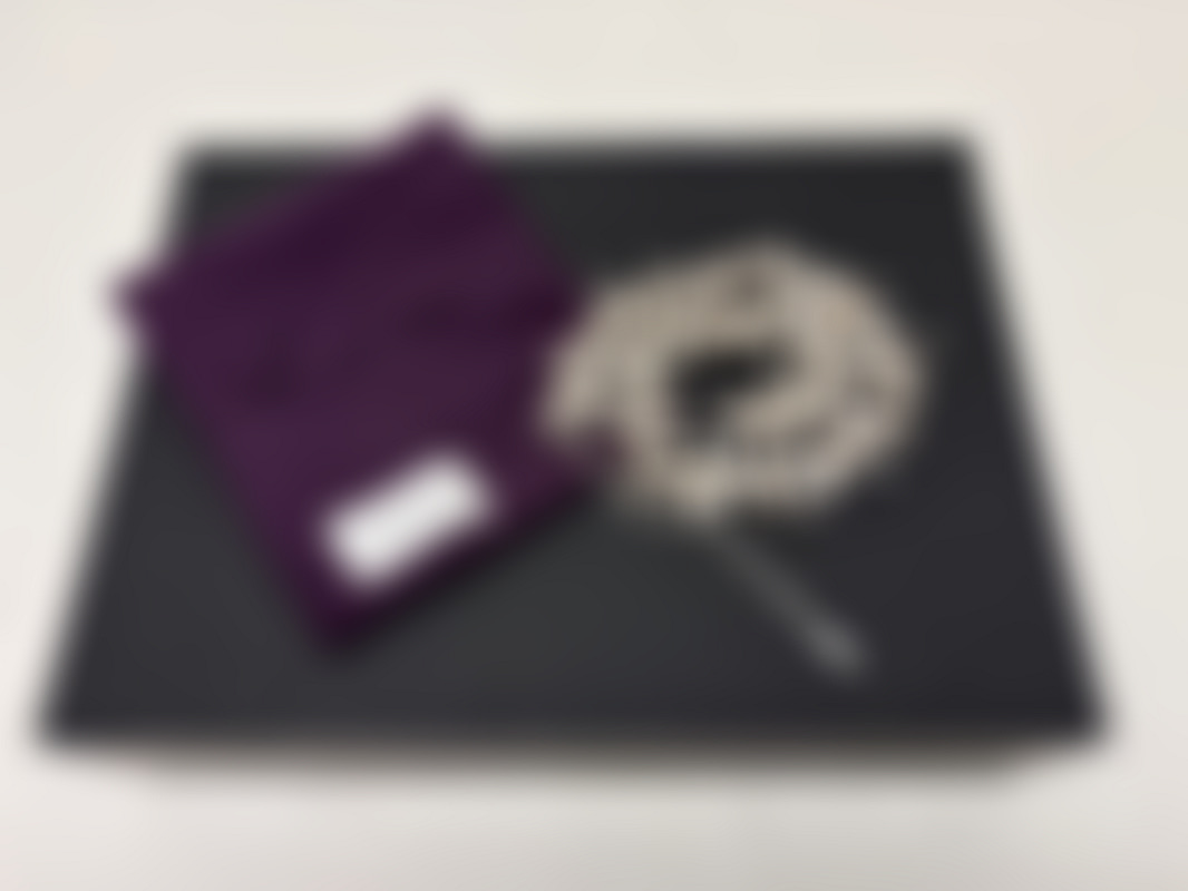 Inclusive lila tygpåse för förvaring.