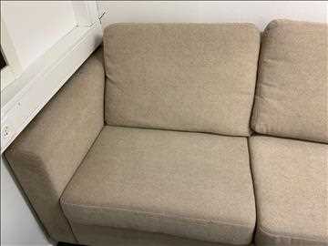 Soffa och bord Soffa L= 255 cm vinkel del = 160 cm djup. fläckar finns fabrikat okänd